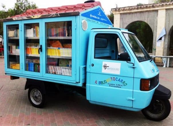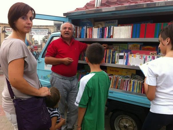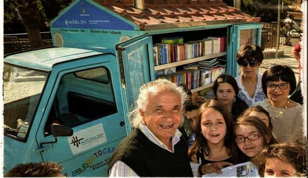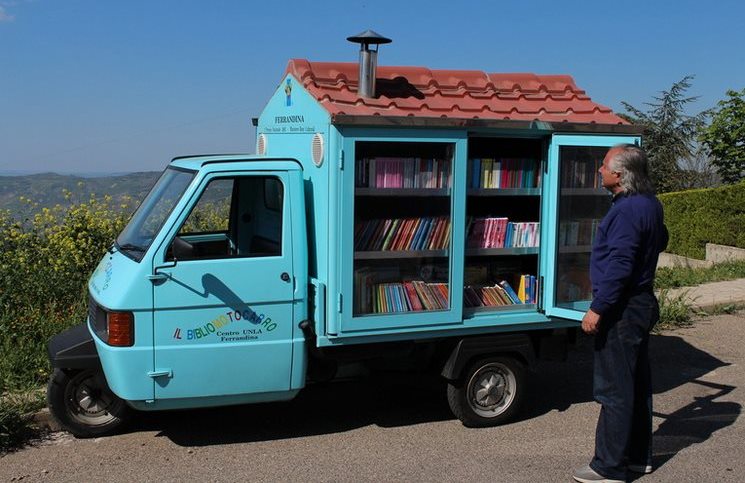Έτσι, το 2003, αγόρασε ένα τρίκυκλο από δεύτερο χέρι, την τροποποίησε έτσι ώστε να μπορεί να μεταφέρει με αυτή πάνω από 700 βιβλία και ξεκίνησε ένα ταξίδι στα πιο απομακρυσμένα χωριά της Νότιας Ιταλίας.